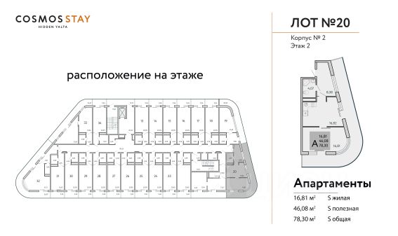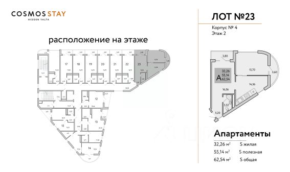 COSMOS STAY HIDDEN YALTA - это комплекс апартаментов из 5 корпусов для отдыха с собственной развитой инфраструктурой. Находится в Ялте у подножья горы Могаби на южном берегу Крыма, вблизи с живописным горно-лесным заповедником. Из апартаментов комплекса открываются завораживающие виды на горные вершины и Чёрное море. В шаговой доступности могабинские озера. Находится на подножии Ай-Петри, что позволяет комфортно добраться до горных склонов. До центра Ялты 10 минут на машине, как и до моря. Концепция апарт-комплекса предполагает круглогодичный комфортный отдых в формате retreat, с заботой о ментальном и физическом здоровье. Всё для Вашего восстановления и перезагрузки, для размеренной и комфортной жизни. Целебный морской воздух и благодатный климат. В комплексе создана атмосфера респектабельной среды для жизни: - собственная инфраструктура; - свой зеленый двор; - безопасность; - детские пространства; - собственная инфраструктура; - свой зеленый двор; - безопасность; - детские пространства; - лаунж-зоны; - будет присвоен статус 3 звезды и работать отельный оператор; - пространства для медитаций и занятий йогой; - ресторан; - индивидуальные келлеры для габаритного инвентаря; - всесезонный бассейн; Консьерж-сервис полного цикла обслуживания с опцией управления недвижимостью - разрешит любой возникающий вопрос. Строительство ведется при проектном финансировании СБЕРБАНКА, ФЗ-214. Продажа через эскроу-счет без комиссий. Завершение строительства - 3 квартал 2026 года Передача ключей до 31.12.2026 Ремонт и оснащение апартаментов: декабрь 2026-апрель 2027 Запуск апарт-отеля в управление - июнь 2027