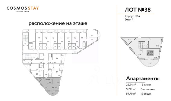 ГОТОВЫЙ БИЗНЕС ПОД КЛЮЧ ДОХОД ОТ 1 500 000 руб. с первого года деятельности отеля. Продаются апартаменты от Застройщика в строящемся комплексе COSMOS STAY HIDDEN YALTA, под управлением ведущего отельера в России COSMOS HOTEL GROUP (COSMOS HOTEL GROUP это Аккредитованная Управляющая компания международных гостиничных операторов). ИНВЕСТИЦИОННЫЕ ПРЕИМУЩЕСТВА КОМПЛЕКСА: - Первый COSMOS STAY в Ялте- Гостиничный номер с ремонтом, мебелью и техникой - Управление номерным фондом командой COSMOS- Прозрачность управления - Гарантированная круглогодичная загрузка комплекса - Глубокое знание и владение бизнесом - БИЗНЕС-МОДЕЛЬ Будущего: круглогодичный и пассивный доход - Среднегодовая доходность 22 % О КОМПЛЕКСЕ COSMOS STAY HIDDEN YALTA это комплекс апартаментов из 5 корпусов для отдыха с собственной развитой инфраструктурой. Находится в Ялте у подножья горы Могаби на южном берегу Крыма, вблизи с живописным горнолесным заповедником, у подножья горы Ай-Петри. Из апартаментов комплекса открываются завораживающие виды на горные вершины и Черное море. ЭТАЖНОСТЬ КОРПУСОВ: до 9 этажей Срок сдачи объекта: IV-кв. 2026г. Квадратура апартаментов: от 25м2 до 80,4 м2. Апартаменты с отделкой и мебелью. ИНФРАСТРУКТУРА КОМПЛЕКСА - Лаунж-зоны - Спа-центр - Детские пространства и площадки для спорта - Всесезонный бассейн - Пространства для медитаций и занятий йогой - Ресторан и Лобби - Супермаркеты и аптека - Консьерж-сервис полного цикла обслуживания с управлением - Экотропы для прогулок - Канатная дорога в 20 минутах КОНЦЕПЦИЯ АПАРТ-КОМПЛЕКСА Предлагает уникальный формат отдыха в стиле Retreat. Здесь созданы идеальные условия комфортного отдыха, заботы о вашем ментальном и физическом здоровье, вдали от городской суеты, в окружении векового леса и природы. Здесь вы найдете всё необходимое для восстановления и перезагрузки. Рассрочка от застройщика, подробности уточняйте в Отделе продаж. Строительство ведется при проектном финансировании СБЕРБАНКА, согласно ФЗ-214. Продажа через эскроу-счета без комиссий и переплат.