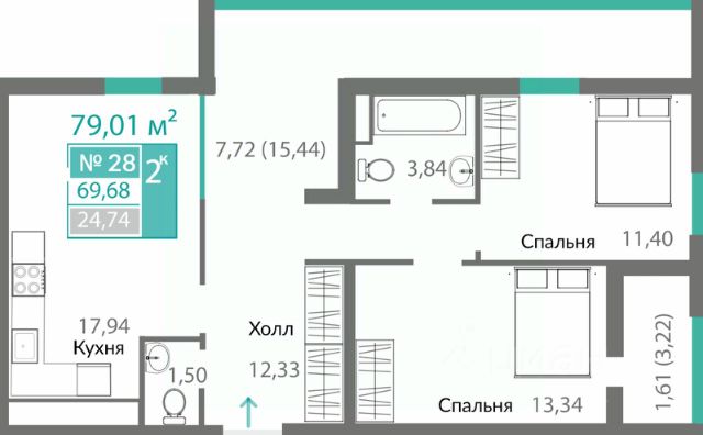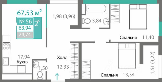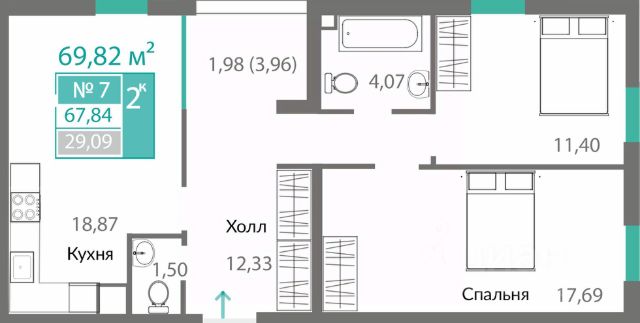 В продаже 2-к квартира без комиссии для покупателя!