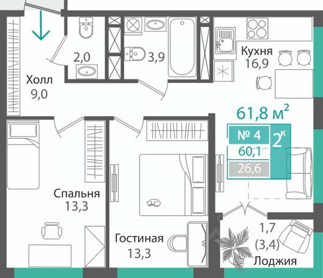 Продаётся 2-комнатная квартира в строящемся доме (Этап 3), срок сдачи: III-кв. 2028, общей площадью 60.1 кв.м., на 14 этаже. Жилой комплекс "Орион" - современный квартал комфорт-класса, в котором сочетаются энергия города и спокойный ритм развивающегося района. Пространство "Ориона" дарит ощущение продуманности, уюта и актуального формата жизни. Продуманные планировки, остеклённые лоджии и широкие окна раскрывают пространство квартиры, наполняя её светом, воздухом и возможностями. А благоустройство, от зелёных аллей до малых архитектурных форм, создаёт атмосферу, в которую хочется возвращаться. Квартал формируют три 17-этажных стильных дома, с лаконичным силуэтом, которые создают выразительную архитектурную композицию.