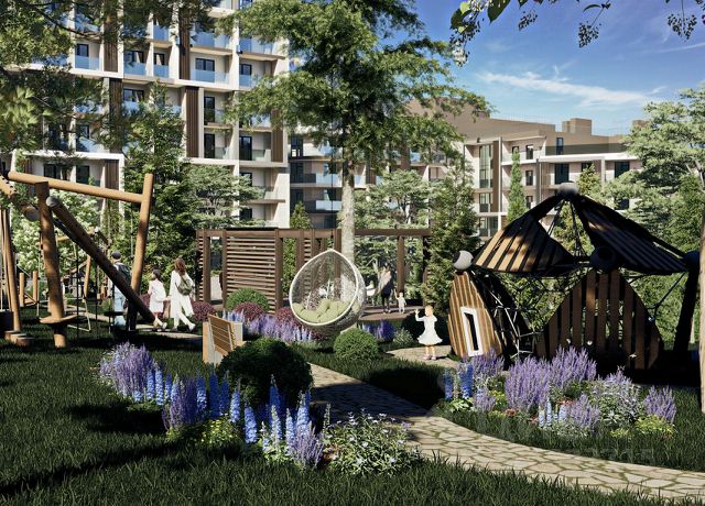 В распоряжении жителей — подземная двухуровневая парковка, зоны отдыха с беседками и барбекю, детские площадки, прогулочные дорожки и инфинити-бассейн с отдельными секциями для взрослых и детей. Внутренняя инфраструктура включает мини-маркет, аптеку, химчистку, ресторан и кофейню.