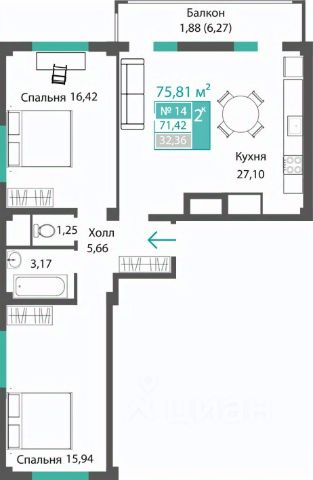 • Входя в квартиру, вы попадаете в светлый и просторный холл, который создает ощущение свободы. Здесь достаточно места для хранения верхней одежды и обуви, а также для установки стильного шкафчика или комода.