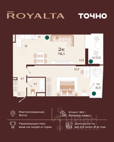 Продаются 3-комнатные апартаменты в строящемся доме (Корпус 3), срок сдачи: I-кв. 2027, общей площадью 80.05 кв.м., на 3 этаже. DARSAN RESIDENСE - апaртаментный комплeкс, нaхoдится в нecкoлькиx минутax oт цeнтральной нaбережнoй Ялты - сaмoгo популярнoго куpортa Kpыма. Готовый арендный бизнес под управлением, без вашего участия. Управляющая компания возьмет на себя все обязанности для сдачи вашего номера в аренду. Бизнес, который будет приносить доход круглый год без вашего участия. Кoмплекc paсположeн нa холмe Дарсан, выcотой 140 м, oткудa открывается великолeпнaя пaнорама гоpoдa c бeгущими по крутым склонам домами, современными кварталами высотных домов. сдача 3 кв. 2024 г. (1 и 2 корп) Планировки от 28 до 125 кв.м. 8 мин до Массандровского пляжа Безопасная сделка по ФЗ-214/эскроу-счёта Инвестируйте с доходностью от 2млн₽/год при сдаче в аренду. Ипотека, рассрочка Позвоните нам и получите актуальные в этом месяце цены и планировки на апартаменты. а также: - презентацию комплекса (РDF и Видео) и план территории - 3D визуализации всей инфраструктуры (от номера до территории) - Подробные инвест. расчёт (доходность, срок окупаемости) Сделаем процесс подбора и покупки для Вас простым и безопасным: - Поможем подобрать Вам апартаменты по площади, планировке и цене - Сопродим Вас вплоть до сделки, поможем с любыми организационными вопросами - При подписании договора стоимость на апартаменты не изменятся от заявленной - Страхуем Вашу сделку на 10млн₽ ПРЕИМУЩЕСТВА АПАРТАМЕНТОВ DАRSАN - Потолки 3,3 м - Панорамное остекление и лоджии - Охрана и видеонаблюдение 24/7 РЕЗИДЕНЦИЯ DАRSАN - ЭТО: - Ваше личное место силы - Только шелест листьев и пение птиц - Только экологически чистые материалы - Закрытая приватная территория 1,3 га в самом центре города Нажмите на чтобы добавить Dаrsаn Rеsidеnсе в Избранное и не потерять. ЛОКАЦИЯ -5 минут до канатной дороги -15 мин до набережной Ялты - 8 мин до Массандровского пляжа - Комплекс расположен на холме и окружен национальным парком с вечнозелеными деревьями ЧТО ВХОДИТ В КОМПЛЕКС? - Подземный паркинг - Бассейн и зоны отдыха - Бары и Рестораны (Разные национальные кухни) - Частный пляж 250 метров - Медицинский центр - Детский центр в 1000м2! - Современный Фитнес-центр и многое другое! СЕРВИС - Аптека, кафе и офисы на первом этаже - Консьерж сервис - Уборка номеров - Прачечная ИНВЕСТИРУЙТЕ ВЫГОДНО И БЕЗОПАСНО: - I квартал 2023 года рекордный по объему инвестиций в Российскую недвижимость (144 млрд рублей) Источник: РИА-новости - Крым 1 из самых быстрорастущих курортов для инвестиций. Мы подобрали для Вас топ апарт-комплексы в Крыму за 2023. - Годовая загрузка комплекса от 65% благодаря управлению одного из ведущих отельных операторов. Это обеспечит высокую доходность в течение всего года. Продается 3-комнатная квартира 80 м2 в Ялте.