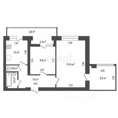 Площадь 64,8 кв.м (без балкона и лоджии).