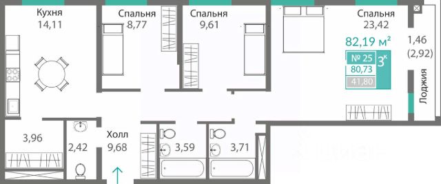 - Жилые комнаты, площадью по 13,22; 12,95 и 19,88 м², одна комната с выходом на лоджию, комнаты наполнены светом и создают атмосферу уюта, которая будет радовать вас каждый день.