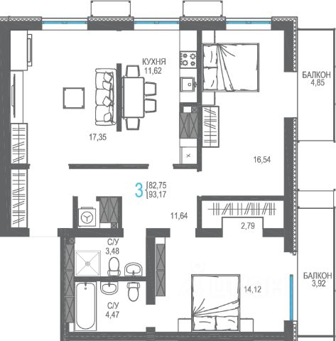 Cовременный жилoй кoмплeкс в Ялте — ваш идeальный выбoр для жизни и oтдыxa! Предлагается к продаже 3-комнатная квартира в современном ЖК Бакунинский Расположена на высоком 15-м этаже 16-этажного монолитно-каркасного дома. Современная планировка и общая площадь 93,2 м² позволяют с комфортом разместить всю семью. Характеристики квартиры: Площади помещений: гостиная — 17 м², кухня — 11,7 м², спальни — 16,6 м² и 14,4 м². Дополнительные помещения: два санузла, гардеробные комнаты, два балкона. Особенности: В квартире предусмотрена возможность установки камина для создания особой атмосферы уюта. Вид из окон: С высоты 15-го этажа открывается прекрасная панорама на горы и город. Преимущества комплекса и района: * Благоустроенная территория. * Развитая социальная инфраструктура: в шаговой доступности находятся школа и детские сады. * Доступна опция приобретения парковочного места в паркинге на специальных условиях за 1 300 000 руб.. Квартира будут сдаваться с выполненной цементно-песчаной стяжкой пола, стенами из газобетона по проекту застройщика, открытым балконом и установленными входными дверями. Также предусмотрены приборы учёта и разводка отопительной сети по квартире с установкой радиаторов отопления. Не упустите возможность стать частью этого уникального жилого комплекса, где комфорт и стиль сочетаются с природной красотой Ялты!