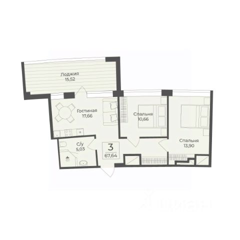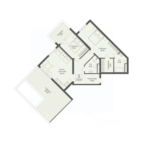 • ✓ В базе Циан 24 3-комнатных квартир с большой кухней в Саки