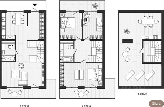 Продуманная до мелочей планировка идеально подойдет для проживания и отдыха в курортном поселке: просторная прихожая, 3 изолированные спальни , большая кухня (13,7 м. кв.), 2 санузла, гардеробная и просторная застекленная лоджия площадью 22.2 кв. м., где из панорамных окон видны Черное море, уходящее за горизонт, утопающие в зелени склоны и сказочная Медведь-гора (Аю-Даг).
