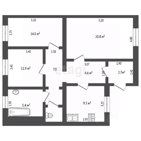 Одна комната проходная (зал), вторая изолированная (спальная).