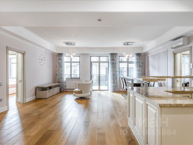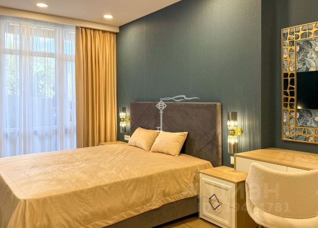 Планировка квартиры включает: спальню с гардеробной комнатой, кухню-гостиную со встроенной кухней и диваном, светлую комнату-столовую с двумя панорамными арочными окнами с видом во внутренний дворик, просторную прихожую со шкафом-купе, ванную комнату совмещенную с санузлом. в гостиной имеется дверь ,,в пол,, с видом во внутренний дворик.