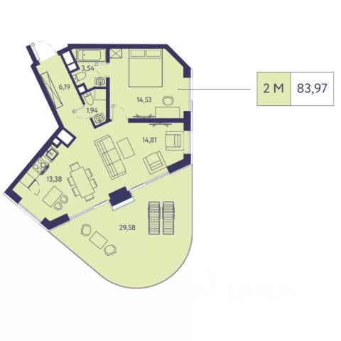 • Планировка продумана максимально удобно: изолированная спальня, кухня-гостиная, совмещённый санузел, просторная терраса.