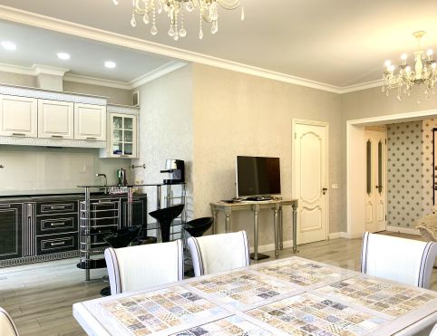 О квартире : Продается шикарная трехкомнатная квартира свободной планировки с площадью сто десять квадратных метров с тремя видовыми балконами и двумя совмещенными санузлами. Квартира состоит из большого холла, коридора, просторной гостинной она же столовая с кухонной зоной, спальной комнатой, кабинетом и детской комнатой. Также в квартире расположено два больших встроенных платяных шкафа - гардеробных, и две просторные хозяйственные комнаты. Квартира на электрификации с центральным отоплением. В данном доме установлена своя котельная для отопления и горячей воды, в технических комнатах находятся дополнительные резервные бойлеры для горячей воды. Установлены лучшие пятикамерные окна с энергосбережением и шумопоглощением на дополнительных защитных замках от проникновения и открывания. В квартире выполнен качественный дизайнерский ремонт. Вся мебель и встроенная техника выполнялась по индивидуальному заказу, под данную квартиру. Все существующее комфортное наполнение данной квартиры, остается для нового собственника. Квартира хороша как для постоянного проживания так и для сезонного жилья. О доме : Новый монолитный дом в современном исполнении жилого комплекса Бриз. Своя закрытая территория с охраной и контрольно пропускным режимом въезда на территорию и видео наблюдением. В доме есть консьерж и обслуживающая - управляющая компания данного домовладения. В доме установлен и работает пассажирский и грузопассажирский лифт. Ухоженный чистый подъезд с металлической дверью и домофоном. Просторные лестничные площадки с возможностью использования хозяйственных нужд. Рядом проживают доброжелательные и порядочные соседи. Вся придомовая территория благоухает цветущими растениями и ухоженными газонами. Установлены детская и спортивная площадка для отдыха. ЖК Бриз имеет свой крытый подземный паркинг, а также открытый паркинг на придомовой, закрытой территории комплекса. О районе : Идеальное расположение дома подойдет как для постоянного проживания, так и для проживания в курортно-летний сезон. Рядом остановка общественного транспорта по направлению Профессорского уголка, который знаменит своей просторной, чистой набережной и свободными пляжами. В пятнадцати минутах ходьбы центральная набережная Алушты. Также в шаговой доступности центральный Автовокзал, где находится вся основная инфраструктура и социально-значимые объекты, ведет подземный переход. Это тихая часть города Алушта со всей необходимой инфраструктурой и транспортными развязками в любую часть города и Крыма. В пошаговой доступности все самое необходимое для комфортного проживания и мобильного решения всех насущных вопросов буднего и выходного дня. Множество детских и спортивных площадок для активного и спокойного отдыха, утопающих в многочисленной зелени лесных насаждений соприкасающихся с горным ландшафтом данной местности. Проживая здесь вы всегда дышите обогащенным кислородом, одновременно насыщенным свежестью моря, гор и зеленого массива реликтовых и лесных насаждений. Номер объекта: #1/5
