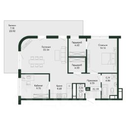 - просторные трёхкомнатные - 87,7 м