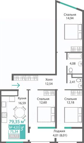 Продаётся 3-комнатная квартира в строящемся доме (Этап 4 (Секции А2, Ж2, Г4, В2, Г3)), срок сдачи: II-кв. 2028, общей площадью 79.35 кв.м., на 4 этаже. Новый жилой комплекс "Подсолнух" от застройщика "Монолит" расположен по адресу: Республика Крым, г. Симферополь, ул. Святителя Гурия