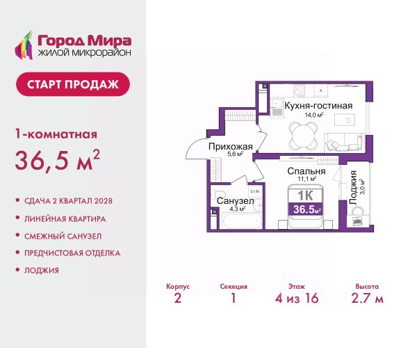 - универсальные однокомнатные от 38,9 м
