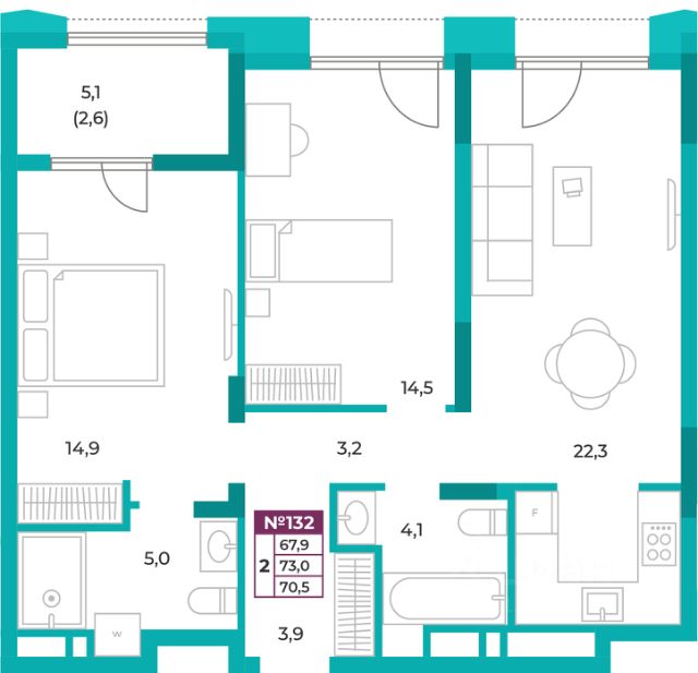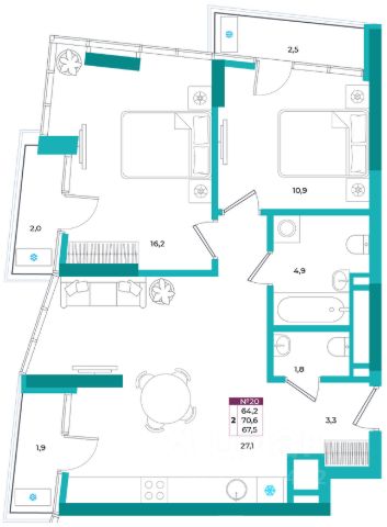 - удобные двухкомнатные от 64,6 м