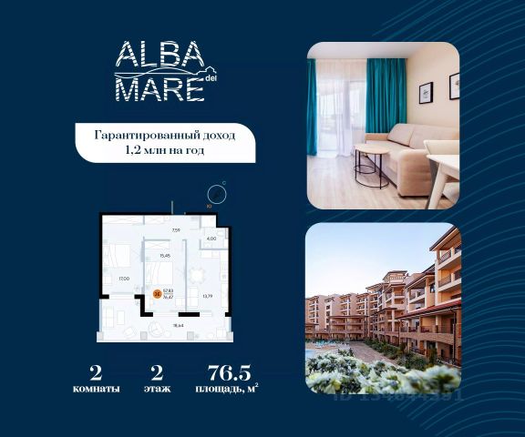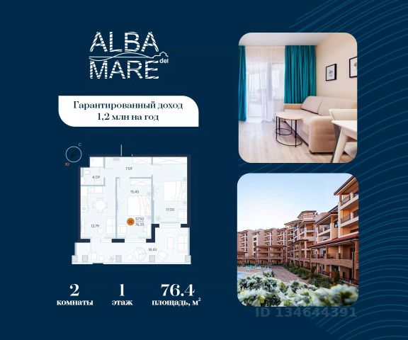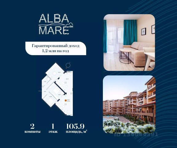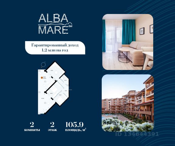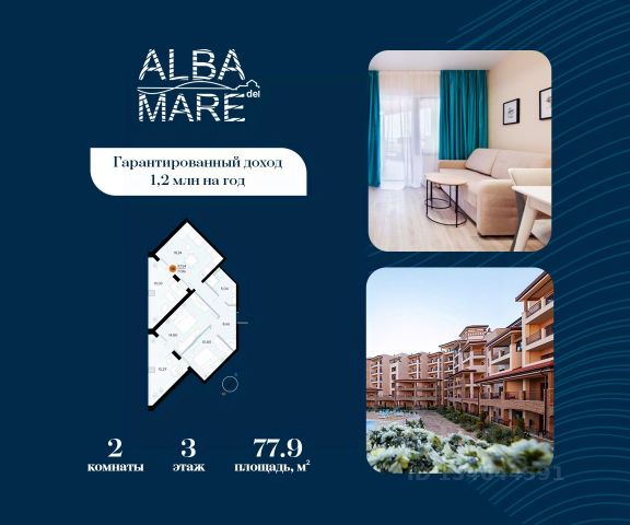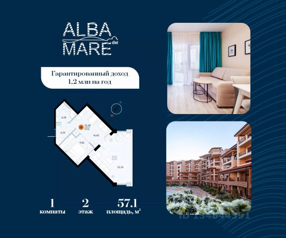 Продаются апартаменты в построенном комплексе. Срок сдачи 4 квартал 2024 года. Альба Дель Маре это комплекс апартаментов бизнес-класса с развитой инфраструктурой. Уютные здания переменной этажности строятся в 5 минутах ходьбы (385 метров) от одного из лучших пляжей Евпатории "Супер Аква Бич". Широкая береговая линия, места для активного отдыха и зоны релакса позволят насладиться отдыхом на любой вкус. Архитектурное решение комплекса создает истинное ощущение Средиземноморья и присутствия на дорогом курорте: скатные черепичные крыши, козырьки и навесы-перголы, арочные завершения проемов, цветовая палитра отделки и фасадов, где используются оттенки желтого, охры, терракоты и бежевого. Переменная этажность здания формирует камерность проекта, создавая прекрасные видовые характеристики для каждого апартамента. Просторные террасы с видом на море, патио с собственным выходом к бассейну на первых этажах комплекса, детская и спортивная площадки, ландшафтный дизайн здесь все создано для роскошного отдыха и расслабления. Территория комплекса апартаментов закрыта и находится под круглосуточным видеонаблюдением, что позволит резидентам и гостям чувствовать безопасность проживания. Концепция комплекса: комфорт проживания с первых дней заселения. Реализация апартаментов осуществляется с полной отделкой под ключ. Собственники апартаментов имеют возможность поручить управление недвижимостью профессиональному оператору, что позволит получать стабильный доход. Автономная газовая котельная позволит не зависеть от внешних отключений отопления., парковочные места на закрытой территории комплекса обеспечат безопасность вашему автомобилю, система центрального кондиционирования создаст комфортную температуру в каждом номере. Жилой комплекс реализуется в соответствии с 214 ФЗ.
