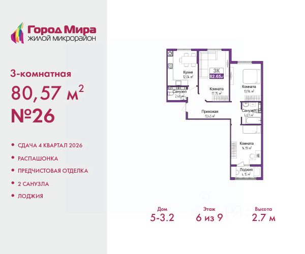 • ✓ В базе Циан 2 3-комнатных квартир на 8 этаже в микрорайоне Фонтаны в городе Симферополь