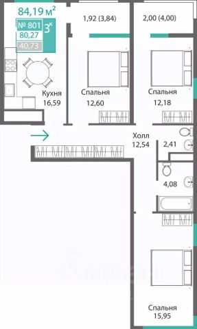 Продается просторная 3-комнатная квартира в ЖК "Черника" от застройщика "Монолит". Квартира находится в хорошем состоянии, с предчистовой отделкой, уже подключены электричество, вода и отопление. Планировка включает три комнаты, два санузла, кухню, гардеробную и большую прихожую. Также в квартире есть остекленная лоджия и открытая терраса.