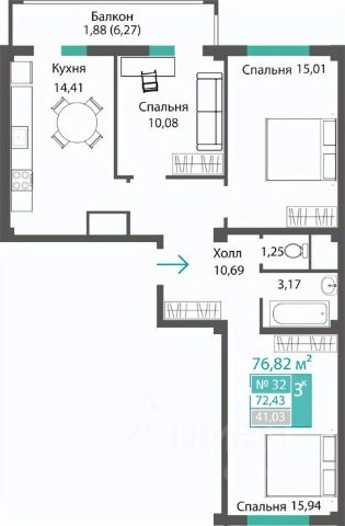Продаётся 3-комнатная квартира в строящемся доме (ЭТАП 2, СЕКЦИИ Б1, Б2, Б3, Б4), срок сдачи: III-кв. 2028, общей площадью 72.43 кв.м., на 8 этаже. Новый жилой комплекс "Семейный квартал ПРОПОЛИС" от застройщика "Монолит" расположен по адресу: Республика Крым, Симферопольский район, с. Мирное, ул. Учительская