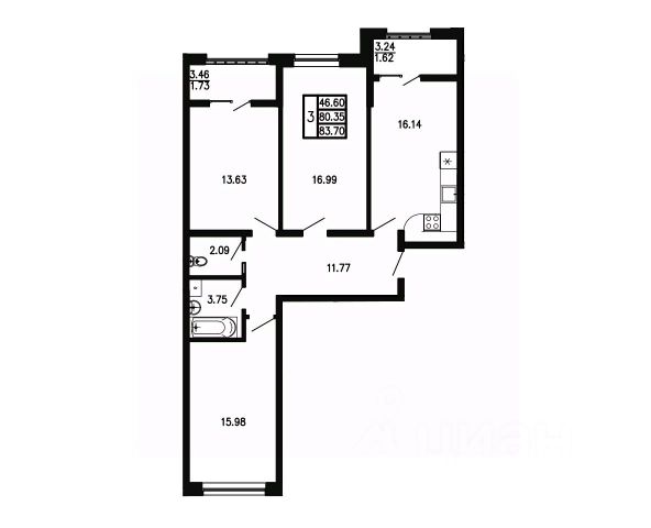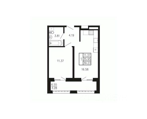 В продаже 1-к квартира без комиссии для покупателя!