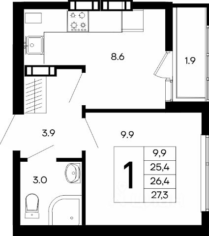 - универсальные однокомнатные от 38,9 м