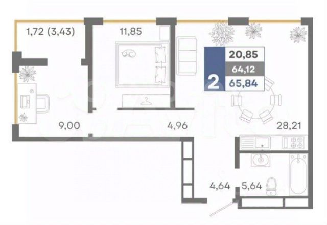- Кол-во комнат: 3