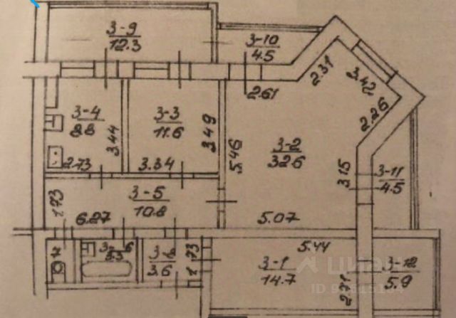 высота потолков -3м.