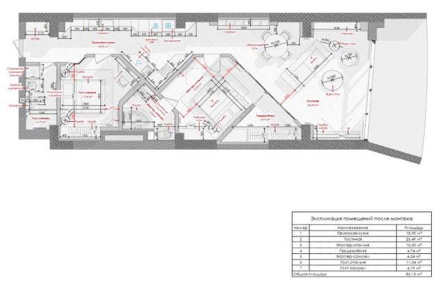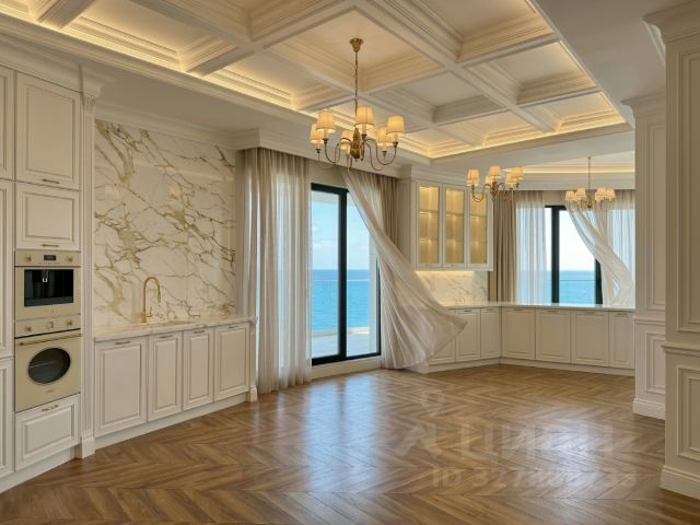 Апартаменты оснащены всей необходимой встроенной бытовой техникой и мебелью: встроенная варочная панель со встроенной угольной вытяжкой, духовой шкаф, встроенная кофе машина, большой холодильник Side by Side, посудомоечная машина, стиральная машина и сушка, винный холодильный шкаф. Также имеется биокамин, система очистки питьевой воды, электропривод штор с датчиками, сейф.