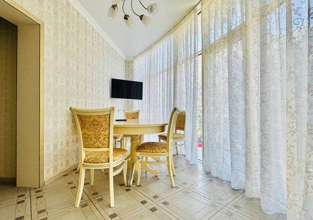Продажа роскошной трехкомнатной квартиры с дизайнерским ремонтом в классическом стиле, с панорамными окнами в пол в жилом комплексе бизнес-класса Бригантина в 200 метрах от Ялтинской набережной. Общая площадь 94 м². Высота потолков - 3,2 метра. Квартира расположена на третьем этаже 14-этажного здания и имеет два балкона . Планировка -гостиная, -просторная спальня, -оборудованная кухня, -столовая, которую можно переделать под еще одну спальню или кабинет, -два балкона с видом на деревья, -совмещенный санузел, -прихожая. Выполнен дизайнерский ремонт с использованием высококачественных натуральных материалов, а интерьер гармонично завершают эксклюзивные предметы мебели. Установлена качественная техника мировых производителей. ЖК "Бригантина" - дом расположенный в самом центре событий и одновременно спрятанный от лишнего шума в объятиях живописного сквера имени Некрасова. Комплекс включает в себя: -круглосуточную охрана и видеонаблюдение, -консьерж-сервис, -собственная газовая котельная на крыше здания, -подземную и надземную парковки для жителей и гостей комплекса, -высокоскоростные, бесшумные лифты "OTIS". В пешей доступности: президент-отель "Таврида" - где в своё время проживали В.В. Маяковский, А.П. Чехов и многие другие знаменитые личности, Ялтинский морской торговый порт, площадь им. Ленина, администрация города, канатная дорога, собор Александра Невского, школы и детские сады, продуктовые магазины, аптеки, остановка общественного транспорта, а также множество кафе и ресторанов. Расположение: -До пляжа и набережной 5 минут пешей прогулки. Идеальна как для постоянного проживания, так и в роли вашей летней резиденции. Добавьте объявление в избранное, чтобы не потерять и следить за обновлением цены. Звоните! Мы всегда на связи.