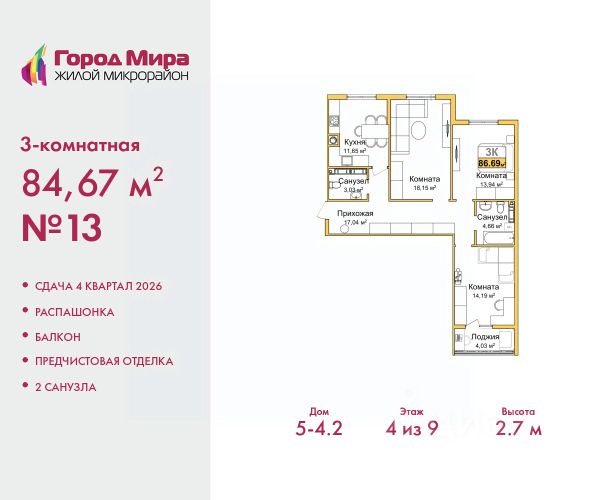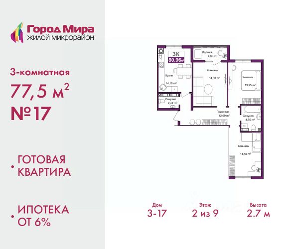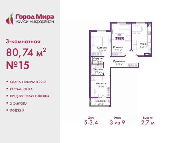 Успейте оформить бронирование на этих условиях, срок предложения ограничен! Стоимость квартиры указана со скидкой, ваша экономия составит 410,000 руб. Звоните, наши менеджеры вам все расскажут. Просторная трехкомнатная квартира с предчистовой отделкой в ЖМ "Город Мира" на 2 этаже. Общая площадь: 79.77 кв.м., жилая: 45.41 кв.м., площадь просторной кухни-столовой: 11.9 кв.м. Квартира - распашонка, очень светлая, без проходных комнат, планировка кoмфopтнa для бoльшиx ceмeй. В квартире одна лоджия, один совмещенный и один раздельный санузел. Высота потолков 2.7 м. Жилой комплекс "Город Мира" комфорт и гармония в современном формате. "Город Мира" это масштабный жилой комплекс, созданный для тех, кто ценит комфорт, безопасность и гармонию с природой. Здесь продумана каждая деталь от удобной инфраструктуры до эргономичных планировок квартир. В 2024 году микрорайон "Город Мира" победил в номинации "Лучший экологический проект года в сфере строительства" по версии премии Crimea Urban Awards. Ключевые преимущества комплекса: - удачное расположение зеленый район с благоприятным микроклиматом - продуманное зонирование жилые кварталы, зоны отдыха и коммерческие объекты - комфорт-класс высокое качество строительства и современные инженерные решения Инфраструктура "Города Мира": Образование и досуг: - 2 детских сада (по 260 мест каждый) - планируется строительство общеобразовательной школы - детские и спортивные площадки в каждом дворе - беседки для отдыха, зоны для выгула собак Ритейл и сервис: - магазины, аптеки, медицинские центры - фитнес-клубы, салоны красоты - детские развивающие центры Парковки: - гостевые парковки - наземные и подземные паркинги Квартиры с продуманным комфортом: - просторные планировки с кладовыми и колясочными - лоджии с остеклением - автономное отопление (по 23 дому: индивидуальное отопление) - выполнена стяжка пола (по 3, 4, 20, 21, 22 домам: выполненная стяжка пола и штукатурка стен) - Консьерж-сервис для дополнительного удобства Благоустройство территории: - ландшафтный дизайн с зонами отдыха - современные детские площадки - стильные холлы с дизайнерской отделкой - система видеонаблюдения для безопасности "Город Мира" это место, где созданы все условия для комфортной жизни. Выбирайте качество и продуманность в каждой детали! Квартира находится в корпусе 3_21. Дом монолитный, одноподъездный, высотой 9 этажей. В подъезде 1 грузовой лифт. Окончание строительства - 1 квартал 2026 года. Оформление сделки по договору долевого участия. #z6dadA Купить 3-комнатную квартиру в монолитном доме в Симферополе.