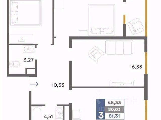Продаётся 3-комнатная квартира в строящемся доме (Корпус 1), срок сдачи: II-кв. 2027, общей площадью 74.82 кв.м., на 9 этаже. "Парковые кварталы" - новый объект от "ИнтерСтрой" Он расположен в активно развивающемся районе Симферополя. Это экологически чистая местность с удобной транспортной развязкой. Первый квартал строительства - это четыре современных девятиэтажных дома. Строгие формы, лаконичный дизайн и динамичные акценты Элегантная колоннада между зданиями словно обрамляет территорию, замыкает ее, тем самым создает приватность и уют. Безусловная функциональность - дворы без машин - ландшафтное озеленение - современные детские площадки - спортивные площадки - места отдыха - удобные парковочные пространства - кладовые для хранения сезонных вещей - колясочные В "Парковых кварталах" тщательно продумана планировка каждой квартиры: - эргономичные однокомнатные от 31 до 52 м - функциональные двухкомнатные от 57 до 74 м - просторные трёхкомнатные квартиры - 75 м Все квартиры оборудованы индивидуальным газовым отоплением и имеют остекленные лоджии. Уникальные квартиры с патио на первых этажах - не мечта, а реальность! Это дополнительное пространство для отдыха и развлечений. Одно из главных преимуществ квартир с патио - возможность наслаждаться пребыванием на открытом воздухе, не выходя из дома. Комфорт для Вашего авто: Вам не придется долго искать, где оставить автомобиль - жилой комплекс оснащен достаточным количеством машиномест. В домах предусмотрены встроенные коммерческие помещения. Прекрасно развитая инфраструктура и продуманные планировки позволят вести бизнес, не отвлекаясь на нюансы. "Парковые кварталы" - идеальный выбор для тех, кто ищет баланс между городским комфортом крымской столицы и спокойным ритмом уютного района. Удобная транспортная развязка даёт возможность быстро выехать на федеральную трассу Таврида. Отсюда можно с лёгкостью добраться на автомобиле в любую точку Симферополя: - до центра города - 20 минут - до аэропорта - 9 минут - до железнодорожного вокзала - 12 минут В пешей доступности: - остановки общественного транспорта - магазины - школы - детский сад - поликлиника - торговый центр - отделения банков - спортивные клубы - администрация - парк ГРЭС