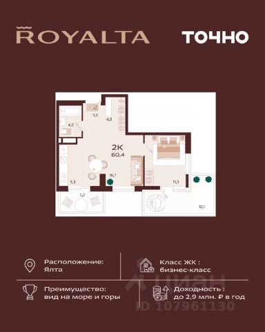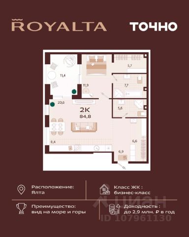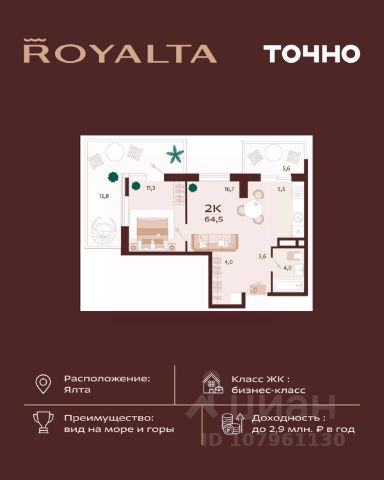 Продаётся 3-комнатная квартира в строящемся доме (Корпус 3), срок сдачи: I-кв. 2026, общей площадью 207.5 кв.м., на 3 этаже. Жилой квартал "Миндаль" расположен в Ялте - природной сокровищнице южного берега Крыма, почти круглогодично залитой солнечным светом. В трёх минутах езды от ялтинской набережной и благоустроенного пляжа. В шаговой доступности - аллея с целебными растениями, потрясающими воображение миндальными деревьями и ялтинским горно-лесным заповедником. Дома и таунхаусы находятся на самой высокой из трёх вершин ялтинского горного амфитеатра, холме Дарсан, с которого открывается панорамный вид на захватывающие дух крымские горы и сверкающую гладь манящего Чёрного моря. В жилом квартале "Миндаль" каждый сможет найти жилье себе по душе. Здесь имеются несколько видов таунхаусов, а также многоэтажный дом с квартирами различной планировки.