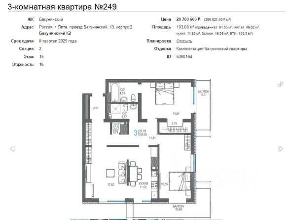• ✓ В базе Циан 1 3-комнатных квартир на последнем этаже на улице Сеченова в городе Ялта