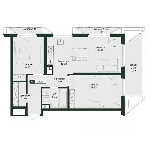 Продаётся 3-комнатная квартира в строящемся доме (дом 2), срок сдачи: III-кв. 2027, общей площадью 56.39 кв.м., на 2 этаже. "Парковая Резиденция" - уникальный проект на Южном берегу Крыма, в г. Алушта, в котором близость к морю сочетается с соседством с вечнозелёным краснокнижным дендропарком с экзотическими реликтовыми деревьями и растениями. Это жизнь в курортной атмосфере, в 5 минутах ходьбы от пляжа, но при этом в центре города со всей его развитой инфраструктурой. Деликатно и гармонично вписанный в окружающий ландшафт, комплекс бизнес-класса "Парковая Резиденция" станет архитектурным украшением Алушты. Его по достоинству оценят ценители приватности и комфорта. - 5,5 га территория проекта - 3 мини-квартала, названия которых отражают растительность территории - Можжевеловый, Эвкалиптовый, Миндальный. - 19 корпусов - 7-14 этажей ОТДЫХАЙТЕ, РАССЛАБЛЯЙТЕСЬ, ЗАРЯЖАЙТЕСЬ - Крытые и открытые бассейны - Инфраструктура для детей - Спортивные кластеры - Территории отдыха с вертикальным озеленением - Прогулочные зоны c сетью извилистых дорожек - Собственный торговый променад - Приватная безопасная территория НАСЛАЖДАЙТЕСЬ НЕВЕРОЯТНЫМ КОМФОРТОМ "Парковая Резиденция" - это новый уровень комфорта. Сервисная инфраструктура продумана так, чтобы резиденты комплекса в считанные минуты могли реализовать свои желания будь то бытовые вопросы или досуг. Рестораны с верандами, кафе, салоны красоты, аптеки, пункты выдачи, пекарни, барбершопы, зоомагазины, цветочные лавки, спортивные студии, детский образовательный центр - всё находится в собственном торговом променаде. Купить 3-комнатную квартиру в новостройке без отделки в Алуште.