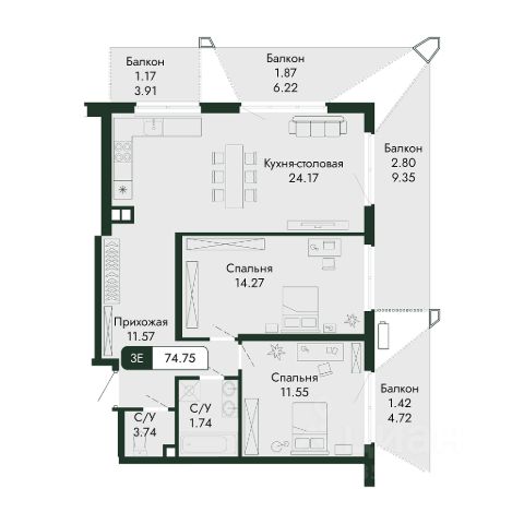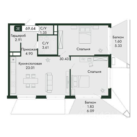 Продаётся 3-комнатная квартира в строящемся доме (дом 2), срок сдачи: III-кв. 2027, общей площадью 56.39 кв.м., на 2 этаже. "Парковая Резиденция" - уникальный проект на Южном берегу Крыма, в г. Алушта, в котором близость к морю сочетается с соседством с вечнозелёным краснокнижным дендропарком с экзотическими реликтовыми деревьями и растениями. Это жизнь в курортной атмосфере, в 5 минутах ходьбы от пляжа, но при этом в центре города со всей его развитой инфраструктурой. Деликатно и гармонично вписанный в окружающий ландшафт, комплекс бизнес-класса "Парковая Резиденция" станет архитектурным украшением Алушты. Его по достоинству оценят ценители приватности и комфорта. - 5,5 га территория проекта - 3 мини-квартала, названия которых отражают растительность территории - Можжевеловый, Эвкалиптовый, Миндальный. - 19 корпусов - 7-14 этажей ОТДЫХАЙТЕ, РАССЛАБЛЯЙТЕСЬ, ЗАРЯЖАЙТЕСЬ - Крытые и открытые бассейны - Инфраструктура для детей - Спортивные кластеры - Территории отдыха с вертикальным озеленением - Прогулочные зоны c сетью извилистых дорожек - Собственный торговый променад - Приватная безопасная территория НАСЛАЖДАЙТЕСЬ НЕВЕРОЯТНЫМ КОМФОРТОМ "Парковая Резиденция" - это новый уровень комфорта. Сервисная инфраструктура продумана так, чтобы резиденты комплекса в считанные минуты могли реализовать свои желания будь то бытовые вопросы или досуг. Рестораны с верандами, кафе, салоны красоты, аптеки, пункты выдачи, пекарни, барбершопы, зоомагазины, цветочные лавки, спортивные студии, детский образовательный центр - всё находится в собственном торговом променаде. Купить 3-комнатную квартиру в новостройке без отделки в Алуште.
