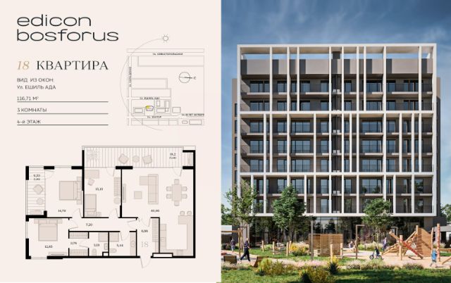 м; удобные двухкомнатные от 64,6 кв. м; просторные трёхкомнатные 87,7 кв. м.