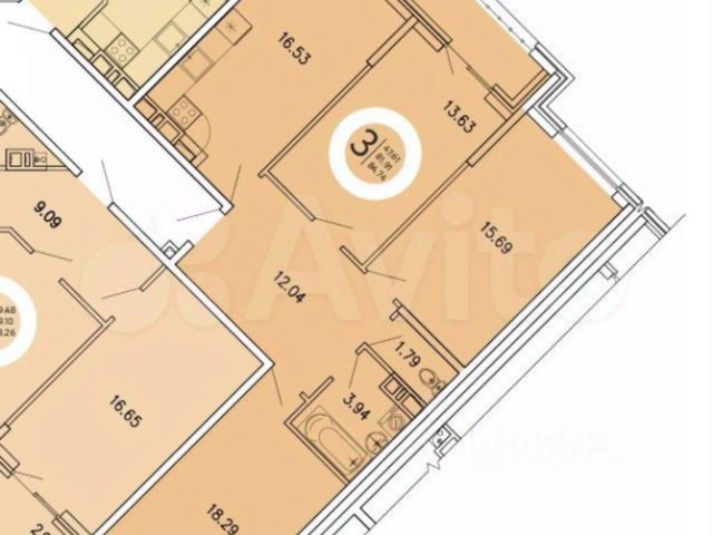 Квартира расположена на 9 этаже 10-этажного дома, общая площадь — 55,1 м², жилая — 28,3 м².