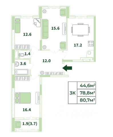 Количество прописанных: пятьДополнительно оплачивается комиссия покупателя в случае подбора объектов недвижимости.Объект 109088