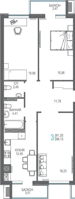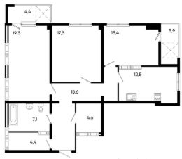 Продаётся 3-комнатная квартира в сданном доме (Дом 62), срок сдачи: III-кв. 2024, общей площадью 77.3 кв.м., на 2 этаже.
