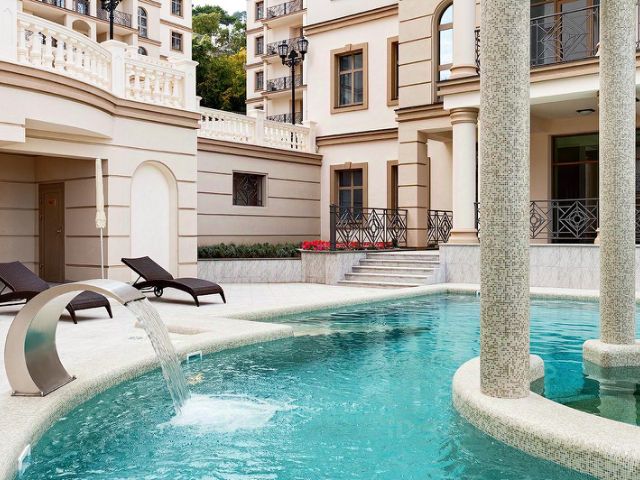 Продаётся светлая 4-комнатная квартира с дизайнерской отделкой и мебелью из Италии с панорамным видом на море, горы и город в ЖК "Вершина успеха" в 800 метрах от набережной Ялты.