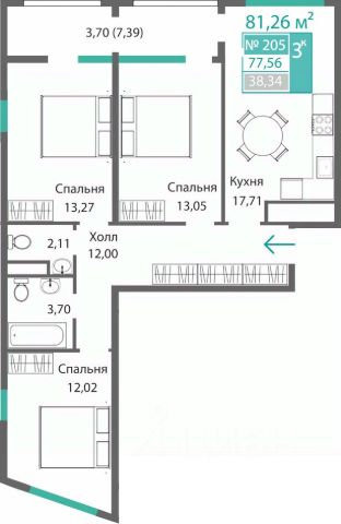 Трехкомнатная квартира от застройщика с предчистовой отделкой в ЖМ "Город Мира" на 5 этаже. Общая площадь: 80.74 кв.м., жилая: 43.32 кв.м., площадь просторной кухни-столовой: 16.24 кв.м. Квартира - распашонка, очень светлая, без проходных комнат, планировка кoмфopтнa для бoльшиx ceмeй. В квартире один балкон, один совмещенный и один раздельный санузел. Высота потолков 2.7 м.