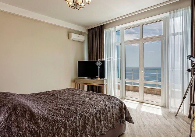 Пентхаус находится последнем этаже 8-этажного дома, площадью 132,5 м², плюс открытая терраса 174 м² с панорамным видом на море, горы, старинный Гурзуф, знаменитую гору Аю-даг, а также на скалы Адалары.
