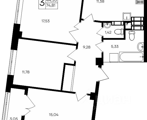 Трехкомнатная квартира в современном ЖК "Солнечный парк"! Предлагаем Вам просторную квартиру с современным ремонтом в новом жилом комплексе "Солнечный парк"! Расположена на третьем этаже девятиэтажного монолитного дома. Общая площадь 74,83 кв.м., жилая 41,13 кв.м., кухня 14,86 кв.м. Жилой комплекс "Солнечный парк" представляет собой комплексную застройку, состоящую из монолитно-кирпичных зданий переменной этажности. На территории комплекса выполняется устройство детских и спортивных площадок. Озеленение решается путем устройства газонов, посадки деревьев и кустарников. В непосредственной близости расположены детские сады, школа и продовольственные магазины. Дом сдан! Не упустите свой шанс! Записывайтесь на просмотр сегодня! Номер объекта 10957308. МЫ ГАРАНТИРУЕМ ФИНАНСОВУЮ БЕЗОПАСНОСТЬ ДЛЯ НАШИХ КЛИЕНТОВ. Полное юридическое сопровождение сделки. Высокий шанс одобрения ипотеки. Звоните, с удовольствием ответим на ваши вопросы! Код пользователя: 130595 Номер в базе: 2785581