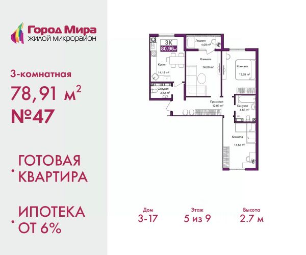 Трехкомнатная квартира с предчистовой отделкой в ЖМ "Город Мира" на 3 этаже. Общая площадь: 81.7 кв.м., жилая: 42.28 кв.м., площадь просторной кухни-столовой: 17 кв.м. Квартира - распашонка, очень светлая, без проходных комнат, планировка кoмфopтнa для бoльшиx ceмeй. В квартире один балкон, один совмещенный и один раздельный санузел. Высота потолков 2.7 м. Жилой комплекс "Город Мира" комфорт и гармония в современном формате. "Город Мира" это масштабный жилой комплекс, созданный для тех, кто ценит комфорт, безопасность и гармонию с природой. Здесь продумана каждая деталь от удобной инфраструктуры до эргономичных планировок квартир. В 2024 году микрорайон "Город Мира" победил в номинации "Лучший экологический проект года в сфере строительства" по версии премии Crimea Urban Awards. Ключевые преимущества комплекса: - удачное расположение зеленый район с благоприятным микроклиматом - продуманное зонирование жилые кварталы, зоны отдыха и коммерческие объекты - комфорт-класс высокое качество строительства и современные инженерные решения Инфраструктура "Города Мира": Образование и досуг: - 2 детских сада (по 260 мест каждый) - планируется строительство общеобразовательной школы - детские и спортивные площадки в каждом дворе - беседки для отдыха, зоны для выгула собак Ритейл и сервис: - магазины, аптеки, медицинские центры - фитнес-клубы, салоны красоты - детские развивающие центры Парковки: - гостевые парковки - наземные и подземные паркинги Квартиры с продуманным комфортом: - просторные планировки с кладовыми и колясочными - лоджии с остеклением - автономное отопление (по 23 дому: индивидуальное отопление) - выполнена стяжка пола (по 3, 4, 20, 21, 22 домам: выполненная стяжка пола и штукатурка стен) - Консьерж-сервис для дополнительного удобства Благоустройство территории: - ландшафтный дизайн с зонами отдыха - современные детские площадки - стильные холлы с дизайнерской отделкой - система видеонаблюдения для безопасности "Город Мира" это место, где созданы все условия для комфортной жизни. Выбирайте качество и продуманность в каждой детали! Квартира находится в корпусе 3_13. Дом монолитный, одноподъездный, высотой 9 этажей. На этаже 5 квартир. В подъезде 1 грузовой лифт. На сегодняшний день строительство завершено, дом сдан в 4 квартале 2022 года. Оформление сделки по договору купли-продажи. #2mzu25 Продам 3-комнатную квартиру с индивидуальным отоплением в Симферополе.