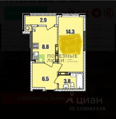 Площадь: 46,5м²