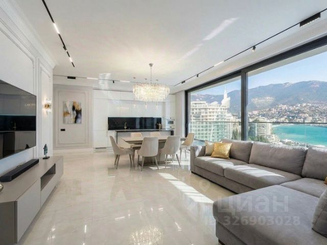 Арт. 70380761 Предлагается возможность купить готовые к проживанию "под ключ" 3-комнатные апартаменты с новым премиальным ремонтом, расположенные в историческом центре Ялты, напротив пассажирского терминала Ялтинского морского порта, в новом комплексе апартаментов Yalta Plaza. Апартаменты (145 м²) расположены на 5-этаже 9-этажного здания. Ключевыми преимуществами этого апартамента являются — новая отделка и максимальная готовность объекта под ключ, а также несомненно расположение в самом центре города и инвестиционная привлекательность за счет проекта реконструкции Ялтинского морского порта под 5-ти звёздочный отель с игорной зоной. Планировочное решение: +прихожая, +гостевой санузел с душевой, +просторная кухня с большим островом и обеденной зоной, +балкон с видом на море и храм, +гостиная с зоной TV, +2 спальни с общим санузлом. В отделке апартаментов использованы самые качественные и дорогостоящие материалы, а также установлена премиальная бытовая техника и мебель от топовых производителей. Дизайн-интерьеров выполнен в строгом стиле с упором на современную классику. ЖК "Ялта Плаза" — современный жилой комплекс бизнес-класса, расположенный буквально в нескольких шагах от знаменитой Ялтинской набережной, Графского проезда и Массандровского пляжа. Элегантное 9-этажное здание, возведённое по монолитно-каркасной технологии, отличается безупречным качеством строительства, дорогой отделкой фасада и изысканным оформлением мест общего пользования. О комплексе: +Подземный паркинг; +Бесшумные скоростные лифты; +Респектабельное лобби; +Консьерж-сервис; +Круглосуточная охрана с системой видеонаблюдения; +Крышная газовая котельная; +Централизованная система вентиляции и кондиционирования; +Уютная кофейня на территории. Расположение: +До ближайшего оборудованного пляжа 6 минут езды на авто; +До Симферополя 1 час 45 минут езды на авто. Документы полностью готовы к сделке. Звоните — и мы организуем просмотр этого прекрасного комплекса у моря!