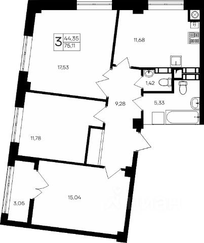 Продаётся 3-комнатная квартира в строящемся доме (Корпус 1), срок сдачи: II-кв. 2027, общей площадью 75.11 кв.м., на 6 этаже. "Парковые кварталы" - новый объект от "ИнтерСтрой" Он расположен в активно развивающемся районе Симферополя. Это экологически чистая местность с удобной транспортной развязкой. Первый квартал строительства - это четыре современных девятиэтажных дома. Строгие формы, лаконичный дизайн и динамичные акценты Элегантная колоннада между зданиями словно обрамляет территорию, замыкает ее, тем самым создает приватность и уют. Безусловная функциональность - дворы без машин - ландшафтное озеленение - современные детские площадки - спортивные площадки - места отдыха - удобные парковочные пространства - кладовые для хранения сезонных вещей - колясочные В "Парковых кварталах" тщательно продумана планировка каждой квартиры: - эргономичные однокомнатные от 31 до 52 м - функциональные двухкомнатные от 57 до 74 м - просторные трёхкомнатные квартиры - 75 м Все квартиры оборудованы индивидуальным газовым отоплением и имеют остекленные лоджии. Уникальные квартиры с патио на первых этажах - не мечта, а реальность! Это дополнительное пространство для отдыха и развлечений. Одно из главных преимуществ квартир с патио - возможность наслаждаться пребыванием на открытом воздухе, не выходя из дома. Комфорт для Вашего авто: Вам не придется долго искать, где оставить автомобиль - жилой комплекс оснащен достаточным количеством машиномест. В домах предусмотрены встроенные коммерческие помещения. Прекрасно развитая инфраструктура и продуманные планировки позволят вести бизнес, не отвлекаясь на нюансы. "Парковые кварталы" - идеальный выбор для тех, кто ищет баланс между городским комфортом крымской столицы и спокойным ритмом уютного района. Удобная транспортная развязка даёт возможность быстро выехать на федеральную трассу Таврида. Отсюда можно с лёгкостью добраться на автомобиле в любую точку Симферополя: - до центра города - 20 минут - до аэропорта - 9 минут - до железнодорожного вокзала - 12 минут В пешей доступности: - остановки общественного транспорта - магазины - школы - детский сад - поликлиника - торговый центр - отделения банков - спортивные клубы - администрация - парк ГРЭС