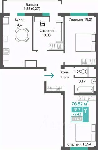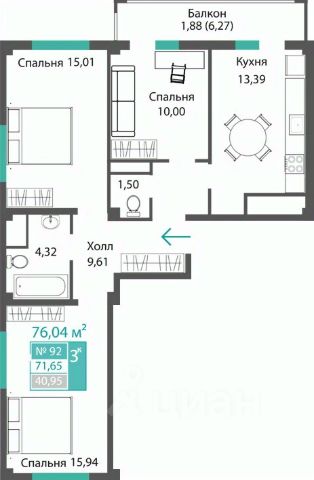 Продаётся 3-комнатная квартира в строящемся доме (ЭТАП 1, СЕКЦИИ А1, А2, А3), срок сдачи: III-кв. 2028, общей площадью 71.65 кв.м., на 2 этаже. Новый жилой комплекс "Семейный квартал ПРОПОЛИС" от застройщика "Монолит" расположен по адресу: Республика Крым, Симферопольский район, с. Мирное, ул. Учительская