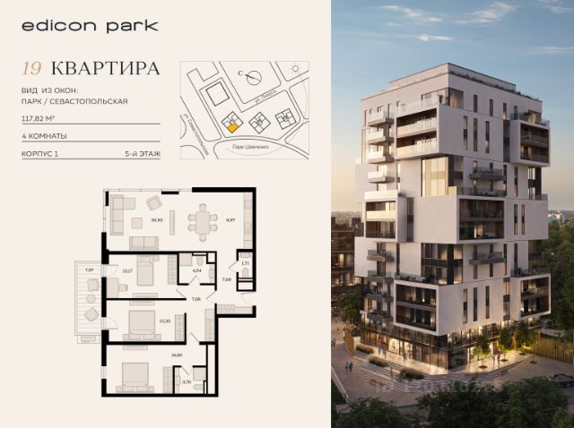 комнаты 26,8 кв. м., 18,6 кв. м., 22,9 кв. м., 7,8 кв. м